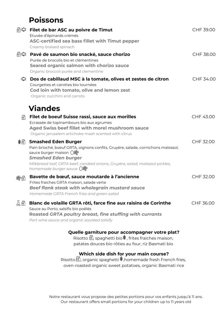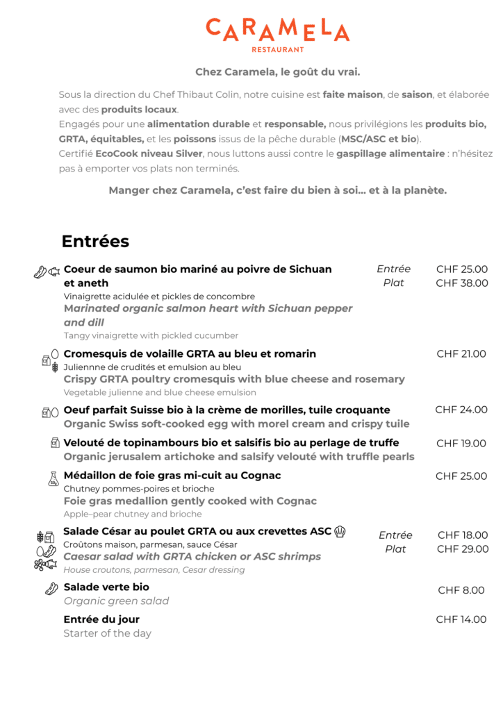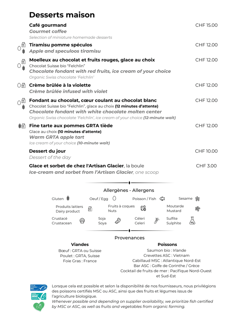 Cette carte de room-service est disponible pendant les heures d’ouverture du restaurant :